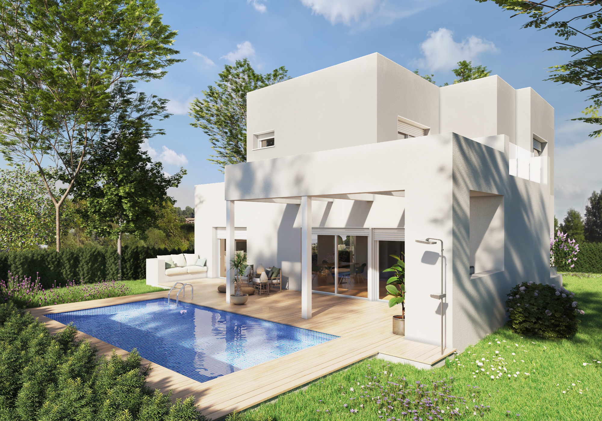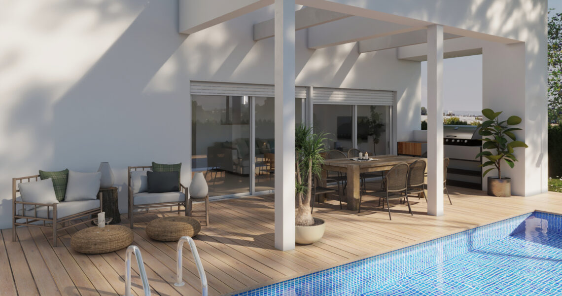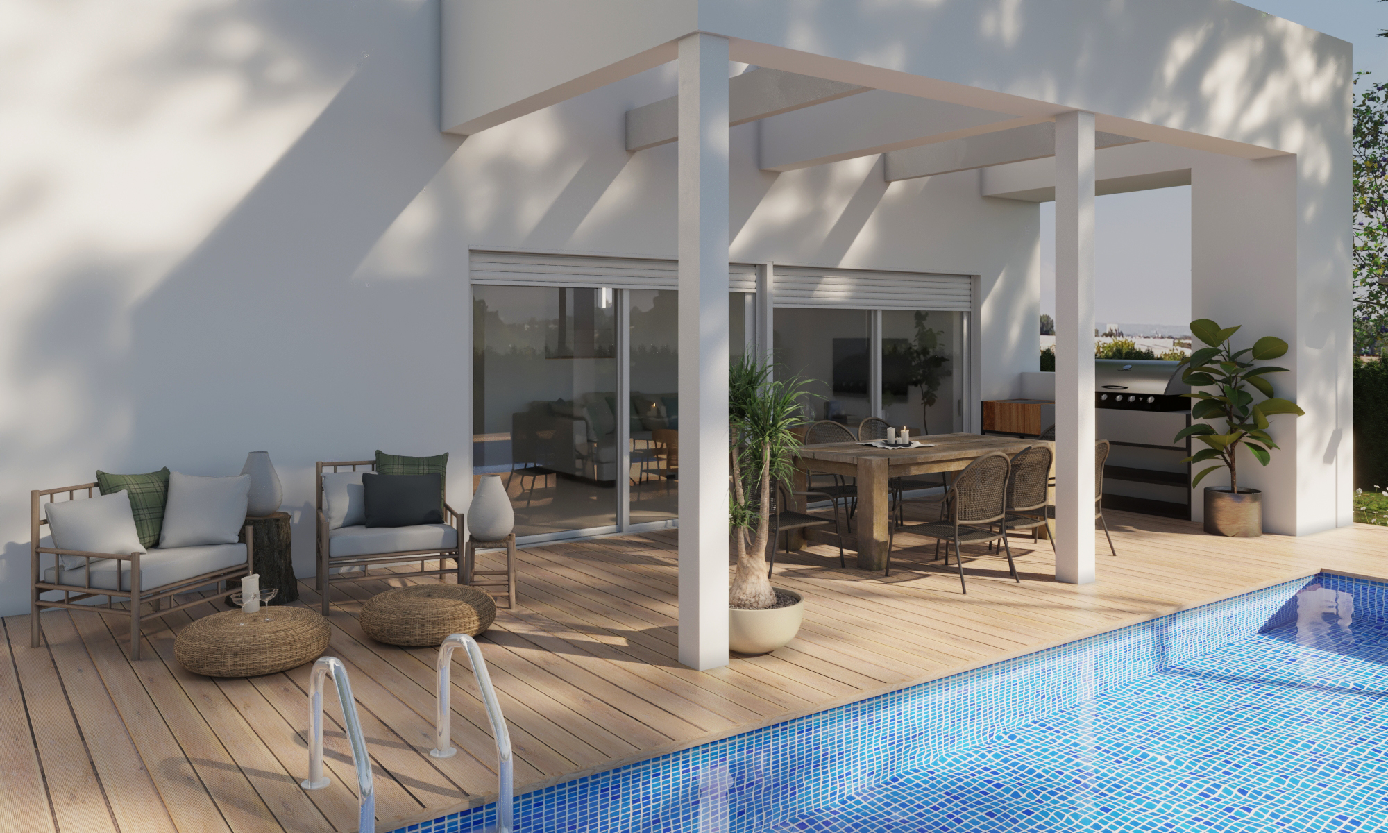 La terraza descubierta cuenta con una piscina privada y también espacio dedicado a barbacoa.